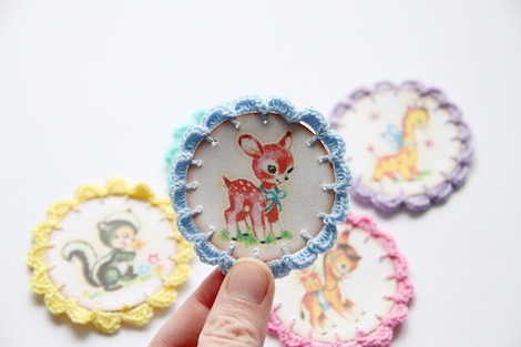 These cute little circles are currently hung up in my studio as a garland, and I made some to use as gift tags too. My next project is to use iron on transfers and felt to recreate them in fabric form to turn into brooches! Trust me, once you've tried crochet edging you will want to add it to EVERYTHING - I'm currently adding edging to all my pillowcases for my bed (which, admittedly, is taking a very long time, but it will be worth it!)